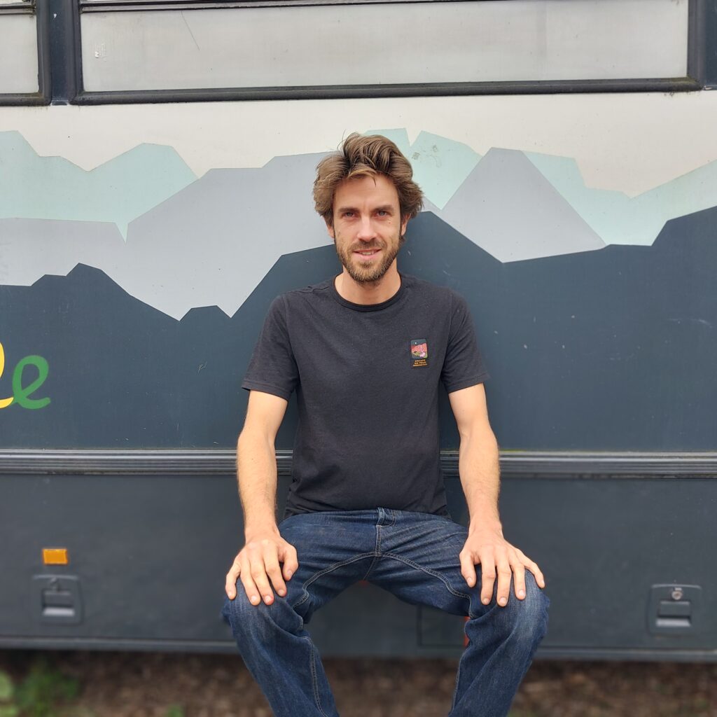 Antoine, menuisier passionné, tombé amoureux du bois en réparant un vieux bureau d’écolier. Il s’est installé à Zaï pour partager son savoir-faire, transmettre sa maîtrise du travail traditionnel et explorer des projets collectifs. Avec lui, les personnes accompagnées apprennent que chaque nœud dans le bois raconte une histoire, et que même une planche tordue peut devenir une œuvre d’art.