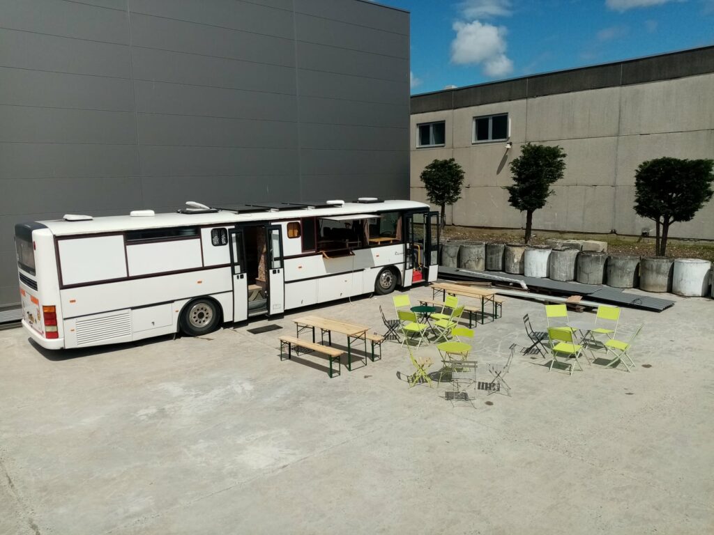 Tayo est un bar mobile aménagé dans un bus, qui parcourt les villages d’Occitanie en semaine pour y établir un point de rassemblement convivial aménagé, tout en proposant des événements festifs durant le week-end.